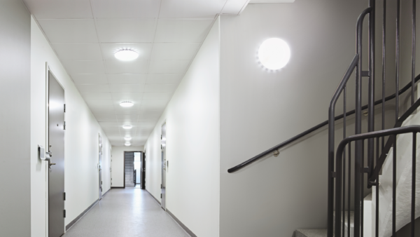 Schön kompakt. Schön robust. Hochfrequenz-Sensorleuchte RS PRO S20 SC IP65, ideal für Schwimmbäder, Hotels, Umkleiden- und Duschbereiche, Durchfahrten in Industriegebäuden und Fussgänger-Unterführungen, inklusive Bluetooth Mesh Funkvernetzung mit weiteren RS PRO S-Leuchten, 15,7 W LED/, 3000 K, schlagfeste und opale Polycarbonat-Haube, IK10, 360° Erfassung, Reichweite Ø 1 – 8 m stufenlos einstellbar, Grundlichtfunktion, und Nachbargruppen-Funktion. Die S-Serie kann zudem mit Gleichstrom betrieben werden, was eine Anbindung an Zentralbatteriesytseme ermöglicht.